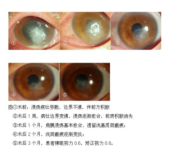 該手術(shù)是應(yīng)用光化學(xué)原理,僅是微創(chuàng)手術(shù),術(shù)后反應(yīng)小,術(shù)者痛苦少。謝某的配合,讓手術(shù)進行得很順利。術(shù)后1月,廈門眼科中心進行隨訪,謝某的潰瘍基本愈合,術(shù)后3個月,謝某的裸眼視力0.6,矯正視力0.8。手術(shù)的成功不僅為謝某保住了眼球,而且視力恢復(fù)狀況良好,這讓謝某心中充滿對廈門眼科中心的感激,連連說謝謝。