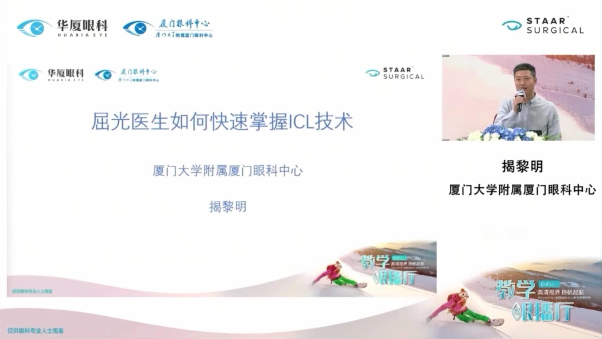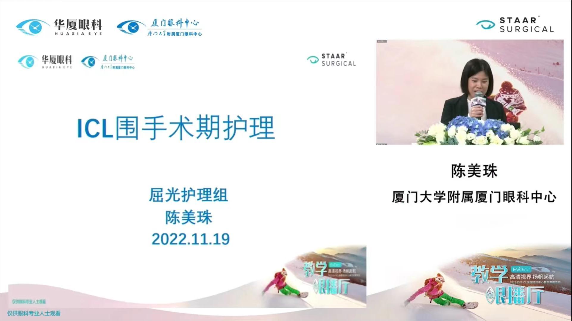 11月19日,為向全國(guó)眼科醫(yī)生分享臨床經(jīng)驗(yàn),促進(jìn)ICL診療技術(shù)規(guī)范化開展,滿足近視人群對(duì)高質(zhì)量高品質(zhì)生活的追求,廈門眼科中心攜手STAAR EVO ICL團(tuán)隊(duì),于廈門眼科中心五緣院區(qū)開展了「高清視界 揚(yáng)帆起航」線上教學(xué)眼播學(xué)術(shù)交流會(huì)。