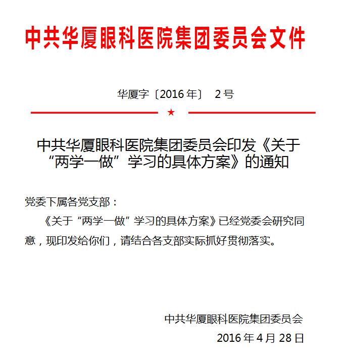 【文章導(dǎo)讀】中共華廈眼科醫(yī)院集團委員會關(guān)于兩學(xué)一做學(xué)習(xí)的具體方案 為推進全面從嚴治黨,根據(jù)黨中央《關(guān)于在全體黨員中開展學(xué)黨章黨規(guī)、學(xué)系列講話,做合格黨員學(xué)習(xí)教育方案》和思明區(qū)組