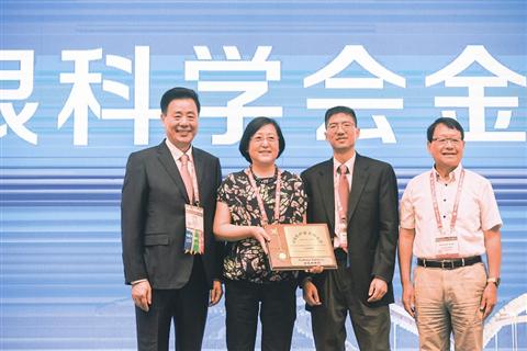 ▲黎曉新總院長榮獲中美眼科學(xué)會“金鑰匙獎”(左二為黎曉新)