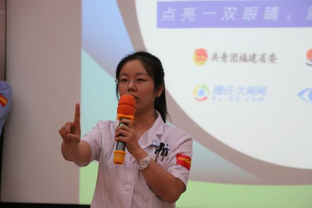 當(dāng)天儀式上,廈門眼科中心斜視與小兒眼科學(xué)科帶頭醫(yī)生潘美華教授結(jié)合臨床經(jīng)驗為學(xué)生分享了愛眼護(hù)眼知識,眼視光部的羅媛醫(yī)師也為學(xué)生教授了“眼肌操”,“動靜”結(jié)合,為學(xué)生上了一堂生動的護(hù)眼課。