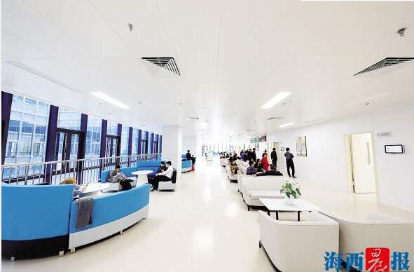 現(xiàn)代化的裝修、暖綠暖黃為主色調(diào)的環(huán)境讓人眼前一亮??剖议T診和住院樓層各種指引標(biāo)識清晰明確,隨處可見溫馨提示,還有志愿導(dǎo)引人員。階梯形前臺,讓坐在輪椅上也能與醫(yī)務(wù)人員無障礙溝通。等候就診時(shí),你可以在按摩椅上來一場放松之旅,也可以漫步VIP候診區(qū)長廊欣賞名畫。在休息區(qū),休閑吧和兒童游樂區(qū)等可以緩解診療時(shí)帶來的陌生感和緊張感。同時(shí),五緣院區(qū)還配有超千個地面、地下停車位,方便“有車一族”到院泊車。