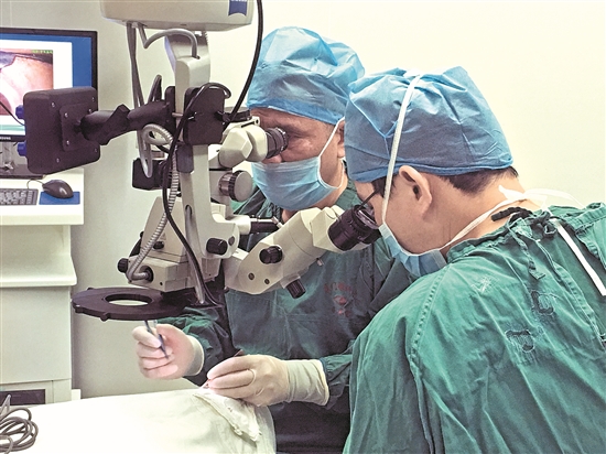 吳護平教授為患者實施角膜移植手術