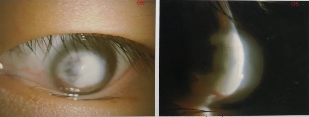 廈門眼科中心眼表及角膜病中心的吳護(hù)平主任接診了小沐,并馬上為她進(jìn)行了細(xì)致的檢查。檢查結(jié)果顯示,小沐的右眼遠(yuǎn)視力只有0.2,白斑遮蓋了大部分的瞳孔,而小沐的左眼只剩下光感,白斑約有10*10mm大小。