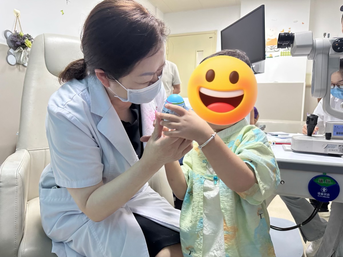 “點(diǎn)點(diǎn)到中間”、“寶寶,我們看亮亮”、“眼睛正正的”……這些童趣的話語充滿了力量,給予患者術(shù)后恢復(fù)的信心。