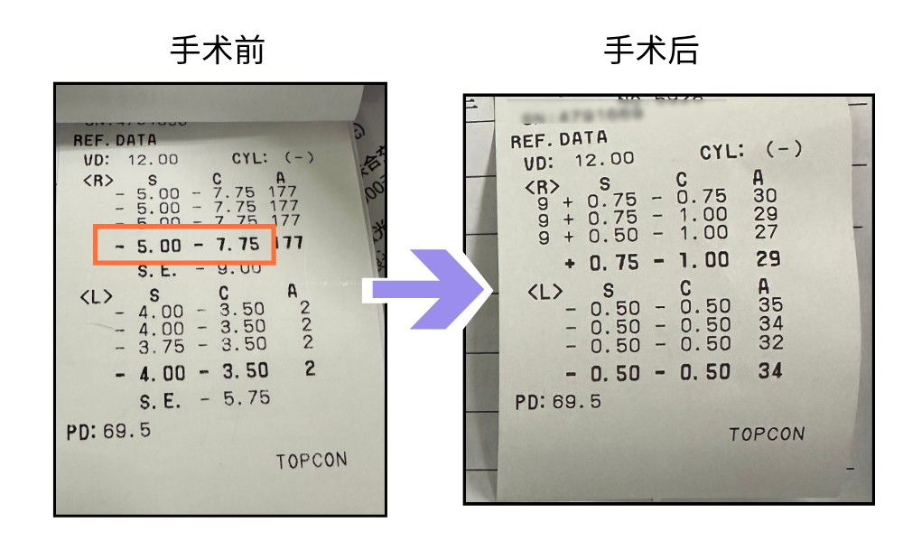 手術(shù)過(guò)程精準(zhǔn)流暢,術(shù)后當(dāng)天下午復(fù)查,他的裸眼視力已躍升至0.8。