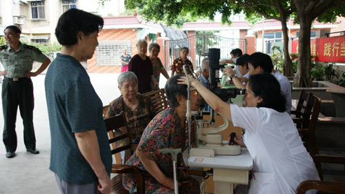 在干休所,眼科專家耐心細(xì)致地為每一位老干部作眼部檢查,向他們講解眼保健知識(shí),進(jìn)行診斷,并發(fā)放藥品。醫(yī)護(hù)人員則熱情地為老人們測量血壓、作視力檢查。為了幫助老人們掌握眼保健知識(shí), 醫(yī)護(hù)人員還專門搜集了眼病常見問題及愛眼護(hù)眼保健知識(shí)等,印制成宣傳手冊發(fā)放給老人。