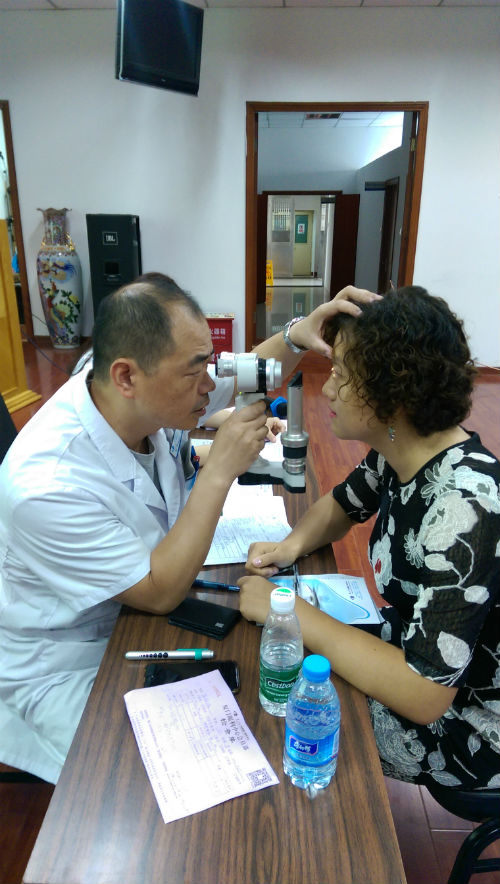 第三個環(huán)節(jié)是裂隙燈檢查,陳偉主任親自檢查,并結(jié)合之前做的兩項檢查,驗光和眼壓,給出針對性建議。