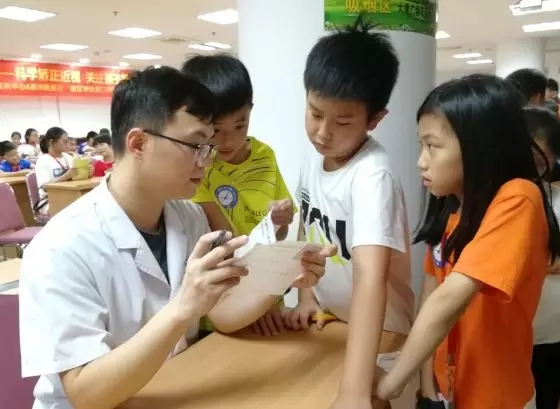 廈門眼科中心醫(yī)生免費(fèi)為現(xiàn)場(chǎng)的學(xué)生們進(jìn)行眼睛“體檢”