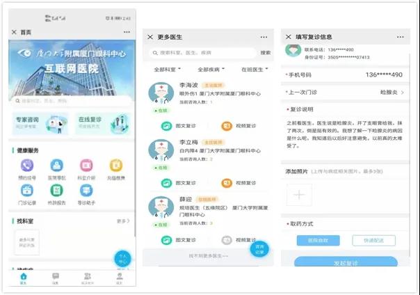 “廈門(mén)眼科中心互聯(lián)網(wǎng)醫(yī)院”一站式解決掛號(hào)難、繳費(fèi)難、取藥難等困擾!更開(kāi)通網(wǎng)上復(fù)診通道,同步門(mén)診歷史記錄,幫助醫(yī)生診療,實(shí)現(xiàn)在線復(fù)診!