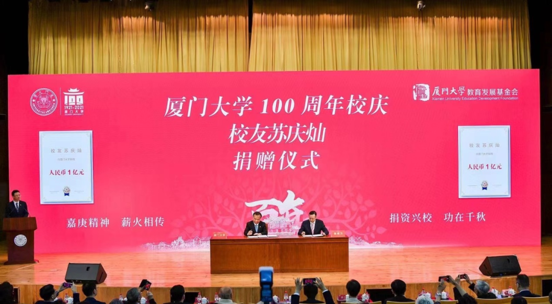 眼科醫(yī)院集團(tuán)蘇慶燦董事長(zhǎng)向廈門(mén)大學(xué)捐贈(zèng)1億元。