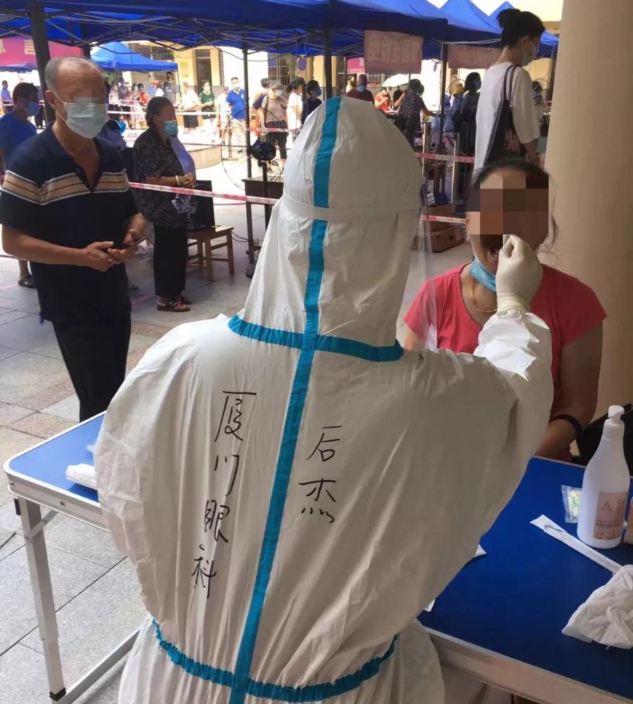 廈門(mén)市第三輪全員核酸檢測(cè)啟動(dòng)。依照部署,廈門(mén)眼科中心醫(yī)護(hù)人員奔赴各社區(qū)核酸檢測(cè)點(diǎn)支援。截止發(fā)稿,廈門(mén)眼科中心已派出403名醫(yī)護(hù)人員前往25個(gè)社區(qū),助力廈門(mén)市打贏疫情防控這場(chǎng)硬仗。作為支援前線的一員,22歲的男護(hù)士——后杰,主動(dòng)報(bào)名,“隨叫隨到”。