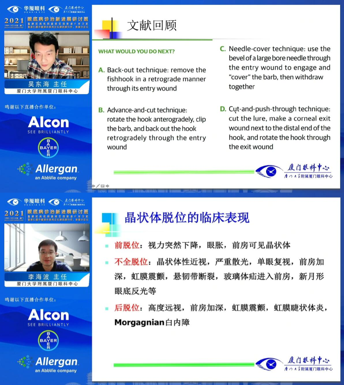 黎曉新院長(zhǎng)圍繞高度近視黃斑劈裂、葡萄膜炎、視網(wǎng)膜靜脈阻塞、兒童遺傳性視網(wǎng)膜病、DR適應(yīng)癥、孔源性視網(wǎng)膜脫離、鞏膜扣帶術(shù)、眼內(nèi)液檢測(cè)、眼內(nèi)激素治療DME等主題進(jìn)行全方位深層次的講解,對(duì)有關(guān)熱點(diǎn)問(wèn)題積極探討,交流實(shí)踐經(jīng)驗(yàn),分享成果,助力中國(guó)防盲治盲事業(yè)發(fā)展。