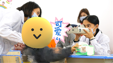 在校方工作人員的協(xié)助下,廈門眼科中心眼健康管理中心的小姐姐們耐心引導(dǎo)著孩子,嘗試讓他們觀察視力表上“小鱷魚”嘴巴張開的方向,努力讓他們看向手持視力篩查儀中的熱氣球。就這樣她們花了近三個小時才完成了所有孩子的視力和屈光篩查。