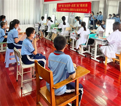 建黨節(jié)期間,項(xiàng)目聯(lián)合廈門大學(xué)附屬?gòu)B門眼科中心黨總支、鳳凰花光明先鋒志愿服務(wù)隊(duì)組織黨員志愿者代表,來到同安區(qū)蓮花鎮(zhèn)蓮花村新時(shí)代文明實(shí)踐站、翔安區(qū)金海街道浦西社區(qū)新時(shí)代文明實(shí)踐站,為當(dāng)?shù)鼐用袢罕娝腿チ伺牡难劢】岛Y查及義診活動(dòng)。