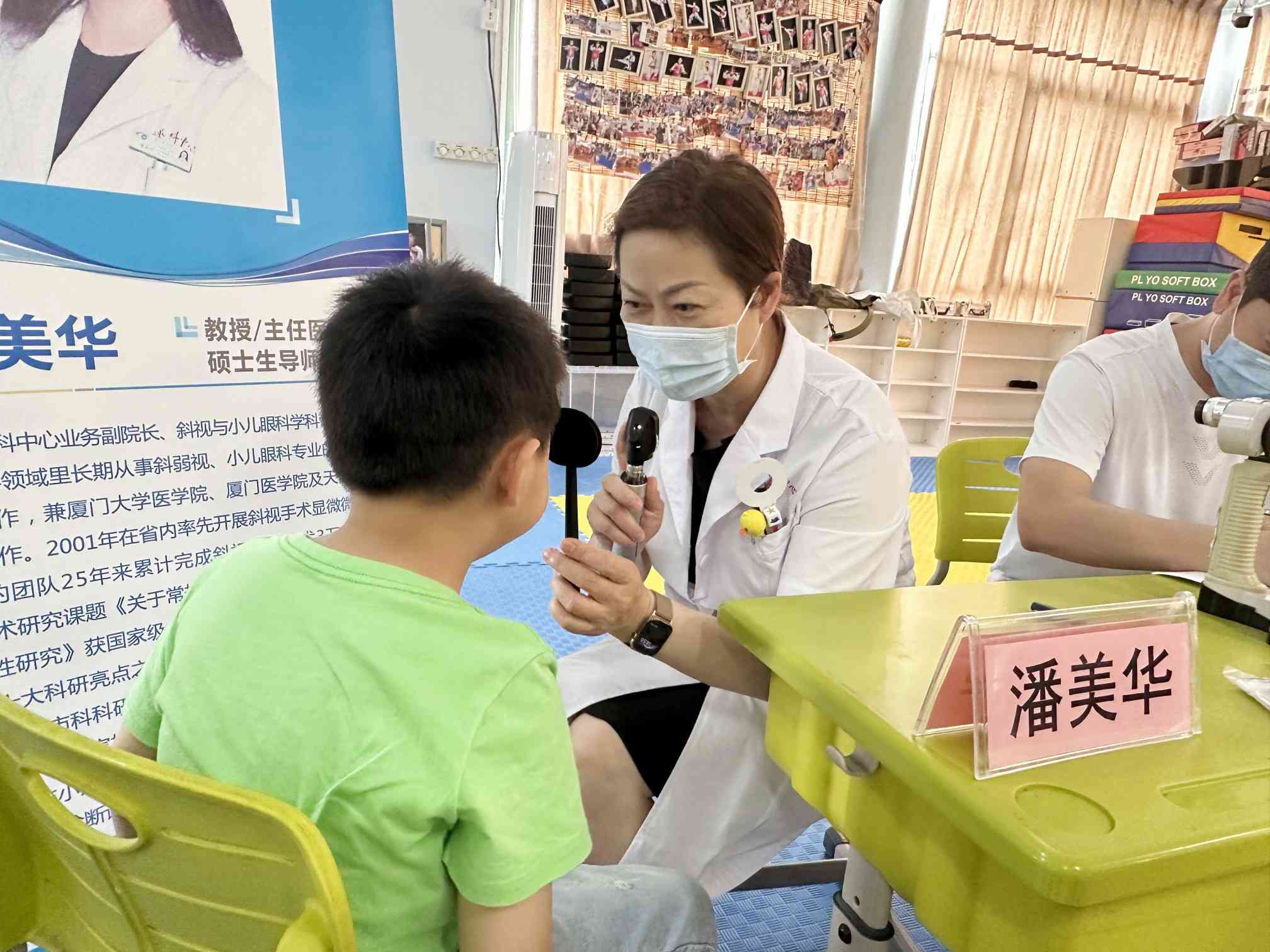 近日,為守護(hù)特需兒童的光明未來,在廈門市「愛心廈門」建設(shè)工作領(lǐng)導(dǎo)小組辦公室及海滄區(qū)殘疾人聯(lián)合會(huì)的指導(dǎo)下,廈門眼科中心「看見幸福」眼健康公益項(xiàng)目志愿者服務(wù)隊(duì)在業(yè)務(wù)副院長(zhǎng)、斜視與小兒眼病中心學(xué)科帶頭人潘美華教授的帶領(lǐng)下,來到了海滄區(qū)小海星特殊兒童服務(wù)中心,為特需兒童們開展了一場(chǎng)特殊的眼健康公益篩查診療活動(dòng)。