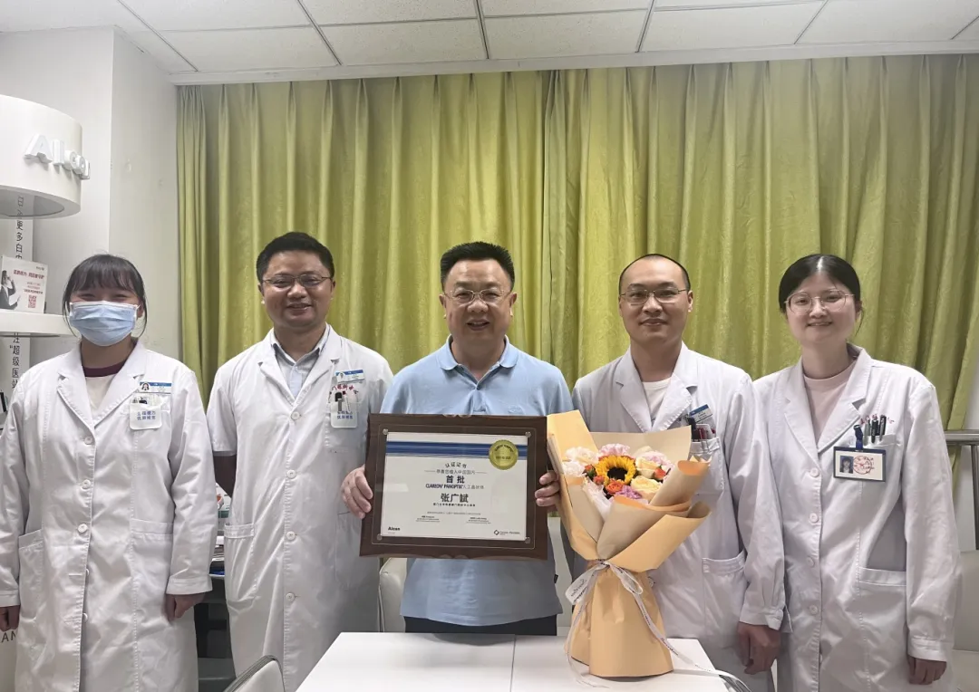 作為首批體驗(yàn)全新Clareon 疏水平臺材料三焦點(diǎn)老視矯正型人工晶體的患者,李大爺在揭開紗布的瞬間就驚喜不已。“看得清,真的不需要戴眼鏡了。”為了測試自己是否還需要眼鏡,李大爺還特地拿出手機(jī)來看,此時(shí)他正拿著手機(jī)興奮的說道。