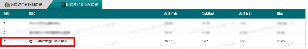 此次廈門(mén)眼科中心同時(shí)收獲兩份榜單前十五名,充分凸顯了廈門(mén)眼科中心在科研創(chuàng)新方面的成績(jī),也是我院科研創(chuàng)新成果留下亮眼足跡,并獲業(yè)內(nèi)廣泛認(rèn)可的證明。
