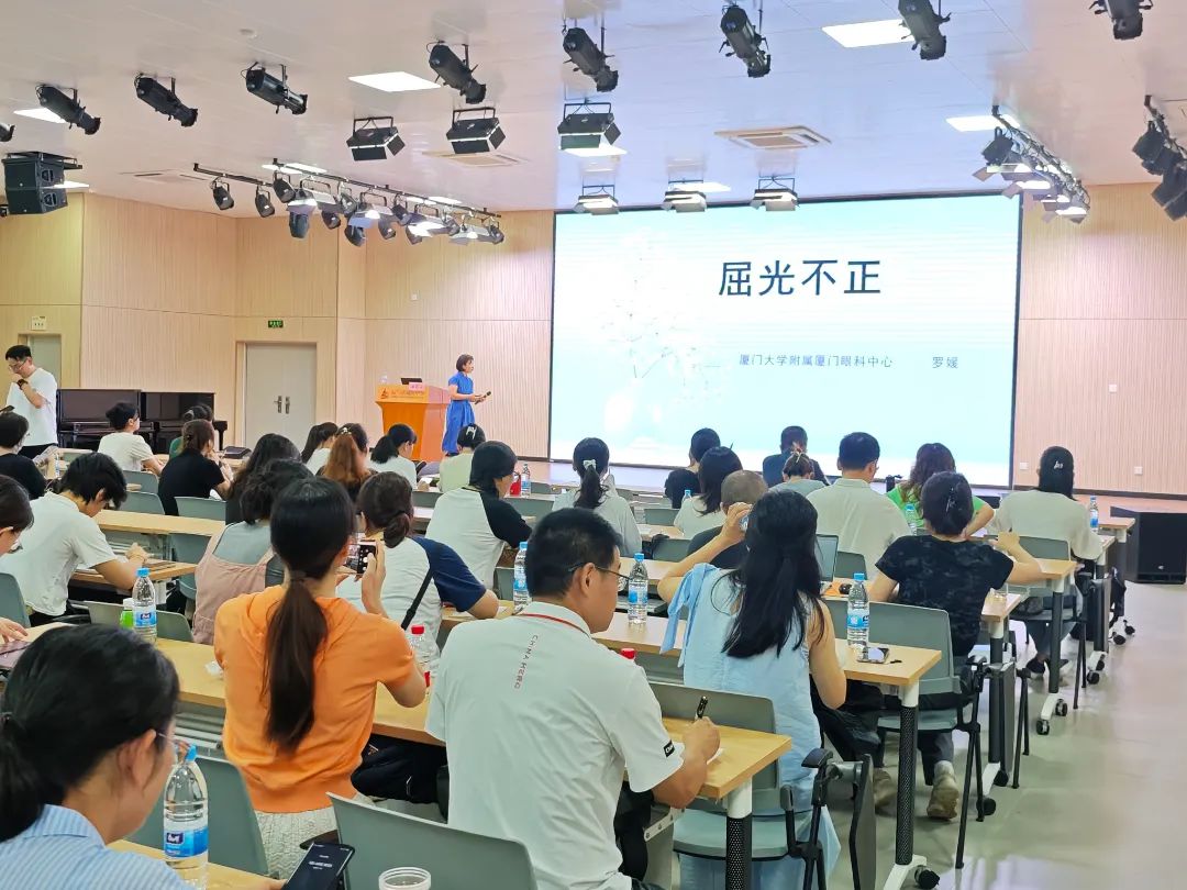 為深入實施近視防控戰(zhàn)略、提高青少年近視防控的全民意識,日前,廈門眼科中心應(yīng)思明區(qū)教育局邀請,于全國近視防控宣傳教育月到來之際,由資深視光醫(yī)生羅媛為思明區(qū)中小學(xué)和幼兒園老師、校醫(yī)進(jìn)行一場生動而實用的近視防控講座。